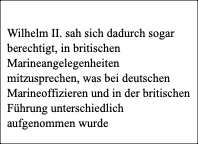 Er empfand diese Ernennung als eine symbolische persönliche Ehre, die den engen dynastischen Beziehungen zwischen Deutschland und Großbritannien entsprach, ohne eine aktive Rolle als britischer Admiral im Sinne eines militärisch operierenden Kommandanten. (49)